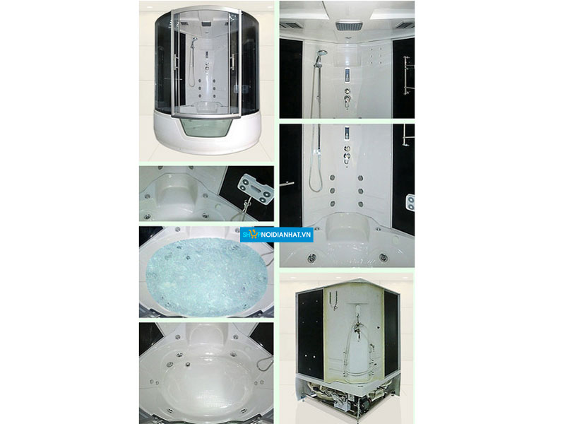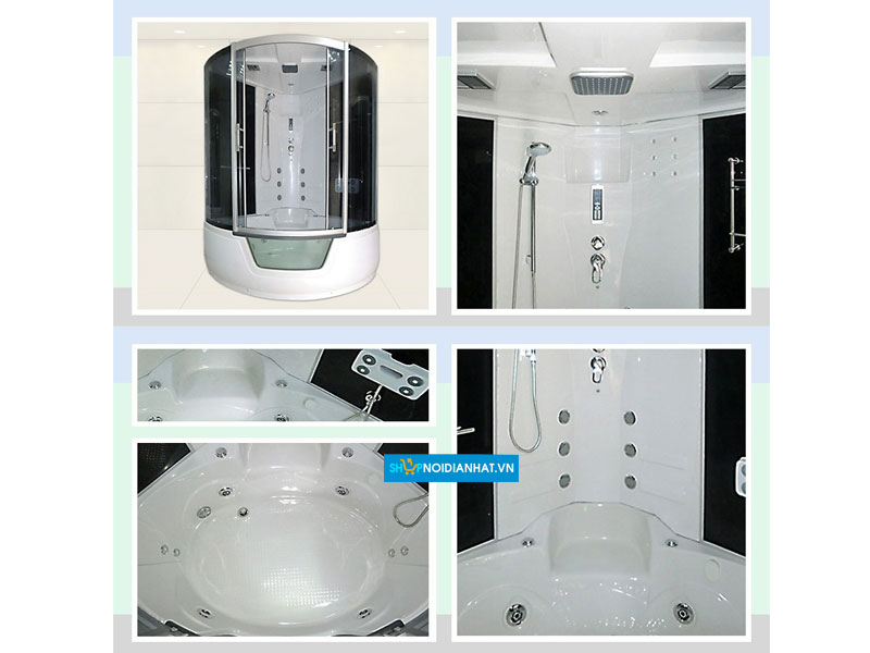 Showerroom gồm: bồn tắm nhà, phòng tắm vòi sen, trần LED, bồn tắm áp lực