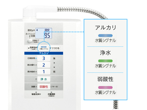 Bạn có thể chọn 1 trong 5 chế độ nước linh hoạt phù hợp với nhu cầu sử dụng: kiềm mạnh, kiềm trung bình, kiềm yếu, nước tinh khiết hay nước axit