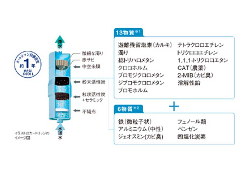 Cấu trúc của bộ lọc để đưa ra sử dụng một than hoạt tính có chứa gốm với khả năng hấp phụ tăng cường, năng lực của than hoạt tính, đạt được một khả năng lọc nước cao.