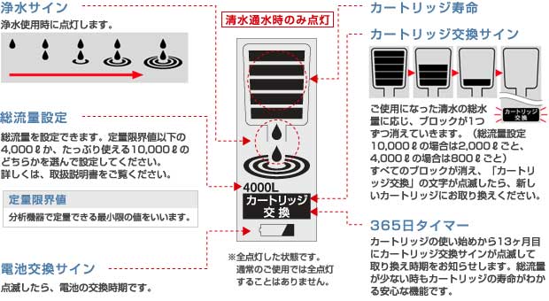 "Quy tụ các công nghệ riêng của màng sợi rỗng và công suất lọc cao" . Lọc bằng màng sợi rỗng, được sinh ra từ những kinh nghiệm và sở hữu công nghệ cao hơn 20 năm. Tại bức tường của sợi rỗng rỗng, các hạt có kích thước 0,1 micromet trở lên được chứa trong nước máy và vi khuẩn cao / gỉ đỏ vv được loại bỏ cao. Hơn nữa, các khoáng chất như canxi là một thành phần của nước ngon vẫn được truyền qua.