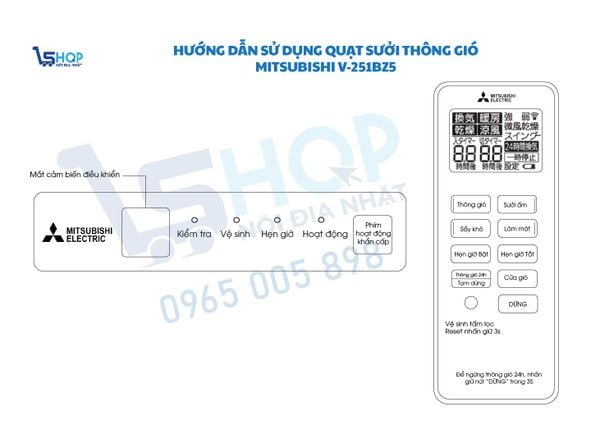 | Chế độ hoạt động | - Sưởi ấm - Hầm ẩm - mát - Thông gió - Sấy khô quần áo - Thông gió 24h - Làm hẹn giờ - Điều khiển từ xa |
