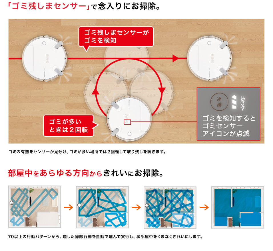 Ở những nơi có nhiều rác, đèn LED trên đỉnh của thiết bị chính thông báo cho bạn và quay hai lần tại chỗ để cẩn thận loại bỏ rác.