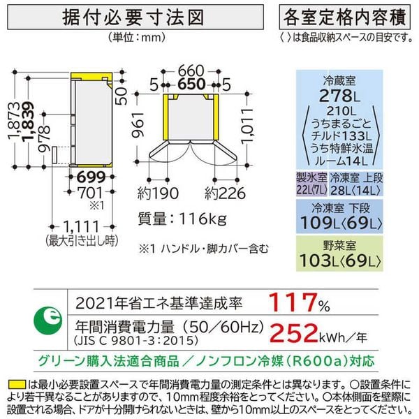 Một trong những điểm mạnh nhất của tủ lạnh Hitachi R-HXC54X(X) là ngăn mát dung tích lên tới 278L, cho phép bạn bảo quản lượng lớn thực phẩm mà không lo chật chội.